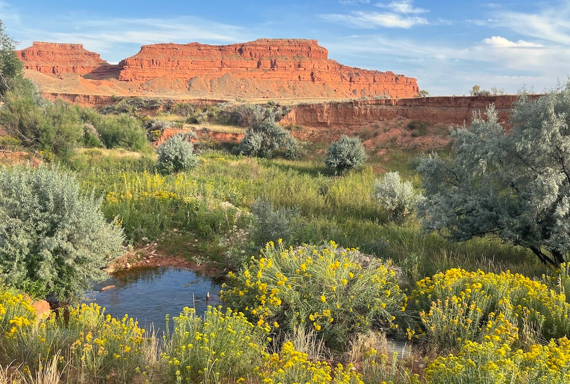 Rabbitbrush and Russian olive trees in the Powder River drainage in central Wyoming