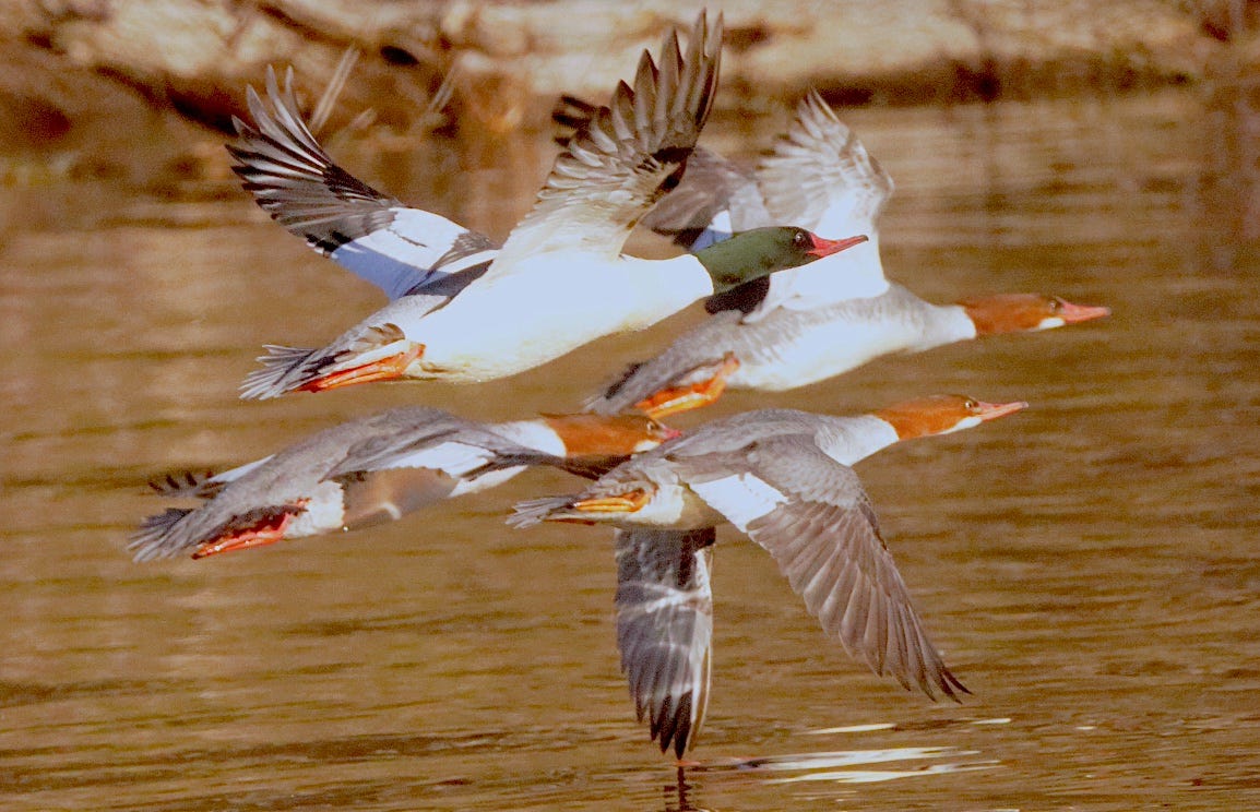 Common mergansers are the largest of North American diving ducks. But it’s their airspeed that can really make your head spin